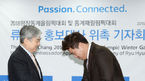 [OSEN=민경훈 기자] 26일 오후 서울 중구 프레스센터에서 열린 류현진(LA다저스)의 2018 평창 동계올림픽 홍보대사로 위촉식에서 류현진이 조양호 조직위원장에게 위촉패와 명함판을 받고 있다. 홍보 대사 위촉식에서는 조양호 조