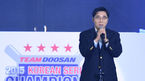 [OSEN=잠실실내체, 백승철 기자] 28일 오후 서울 잠실 실내체육관에서 열린 두산 베어스 팬페스트(Fanfest)에서 김승영 사장이 인사말을 하고 있다. 두산 베어스가 '2015 한국시리즈 우승 기념 팬페스트(Fanfest)'를 개최했다. 기존 잠