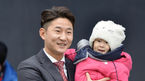 [OSEN=인천공항, 민경훈 기자] 28일 오후 인천국제공항을 통해 출국하는 메이저리거 추신수가 가족들과 출국장에서 포즈를 취할때 딸 추소희가 아빠 추신수를 바라보고 있다. '추추트레인' 추신수(33, 텍사스 레인저스)가 2주간의