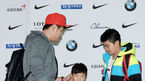 [OSEN=인천공항, 민경훈 기자] 28일 오후 인천국제공항을 통해 출국하는 메이저리거 추신수가 포토타임을 앞두고 아들 추무빈, 추건우의 헤어스타일을 살피고 있다. '추추트레인' 추신수(33, 텍사스 레인저스)가 2주간의 짧은 휴