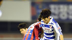 [OSEN=수원, 곽영래 기자] 2일 오후 수원 종합운동장에서 K리그 승강 플레이오프(PO) 1차전 수원 FC와 부산 아이파크의 경기가 열렸다. 전반 부산 이청웅이 볼을 뺏고 있다. K리그 챌린지(2부리그) 정규라운드를 3위로 마감한 수원FC
