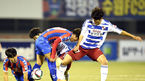 [OSEN=수원, 곽영래 기자] 2일 오후 수원 종합운동장에서 K리그 승강 플레이오프(PO) 1차전 수원 FC와 부산 아이파크의 경기가 열렸다. 전반 수원FC 김재웅과 부산 전성찬이 볼 다툼을 벌이고 있다. K리그 챌린지(2부리그) 정규라운드