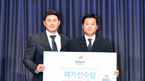 [OSEN=이동해 기자] 프로야구선수협회(이하 선수협) 정기 총회가 2일 오후 서울 강서 메이필드호텔에서 진행됐다. '플레이어스 초이스 어워드' 재기선수상을 수상한 한화이글스 정현석과 선수협회장 서재응이 포토타임을 갖고