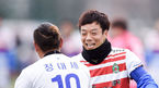 [OSEN=박준형 기자] 4일 오후 충남 논산시 건양대학교 운동장서 진행된 제 16회 ‘추캥(축구로 만드는 행복)’ 자선경기, 전반 백지훈이 덤블링 실패한 정대세를 위로하고 있다. 추캥 행사는 국가를 위해 희생한 분을 도와주는 한
