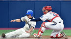 [OSEN=고척,이동해 기자] 4일 오후 서울시 고척스카이돔에서 진행된 '2015 대한민국 야구대제전' 경기고와 장충고의 16강전 경기, 5회말 2사 2루 장충고 고종욱의 안타에 3루에 있던 인진근이 홈으로 다이빙했지만 아웃되고 있다. 201