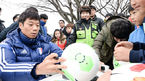 [OSEN=박준형 기자] 4일 오후 충남 논산시 건양대학교 운동장서 진행된 제 16회 ‘추캥(축구로 만드는 행복)’ 자선경기에 앞서 정성룡이 팬들과 악수를 하고 있다. 추캥 행사는 국가를 위해 희생한 분을 도와주는 한편 선후배 간