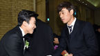 [OSEN=곽영래 기자] FC서울 미드필더 고요한이 5일 오후 서울 라움 아트센터에서 미모의 신부 오수연 양과 백년가약을 맺는다. 결혼식에 참석한 차두리가 고요한과 인사를 나누고 있다. 고요한의 예비신부는 무용강사 겸 쇼핑몰 C