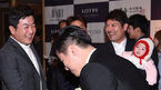 [OSEN=박준형 기자] 5일 부산 서면 롯데호텔에서 진행된 롯데 자이언츠 강민호와 신소연 기상캐스터의 결혼식에서 두산 홍성흔이 강민호에게 축하인사를 전한뒤 돌아가고 있다. 신부 신소연 양은 SBS 기상캐스터 출신으로 지성