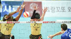 [OSEN=안산,박준형 기자] 6일 오후 경기도 안산시 상록수체육관서 열린 2015-2016 NH농협 V-리그 남자부 OK저축은행과 우리카드의 경기, 1세트 OK저축은행 시몬이 블로킹 성공하고 있다. OK저축은행은 승점 29점을 쌓으며 1위. 반면 우