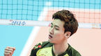 [OSEN=안산,박준형 기자] 6일 오후 경기도 안산시 상록수체육관서 열린 2015-2016 NH농협 V-리그 남자부 OK저축은행과 우리카드의 경기, 1세트 OK저축은행 송명근이 득점 후 환호하고 있다. OK저축은행은 승점 29점을 쌓으며 1위. 반면