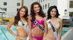 [OSEN=사진팀] 2일(현지시간) 미국 네바다주 라스베거스의 플레닛 힐리우드 리조트&카지노에서 미스 유니버스 후보가 수영복을 입고 촬영을 하고 있다. 왼쪽부터 2015 미스 말레이시아 Vanessa Tevi Kumares, 미스 체코Nikol Enjqantnerov,