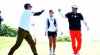 [OSEN=괌(미국), 최규한 기자] 13일 오후(현지시간) 미국 괌 망길라오 골프장에서 '프로야구선수 매치플레이 챔피언십 in GUAM' 최종 라운드가 열렸다. 김상현-신명철-김효은 프로가 퍼팅을 성공시킨 뒤 하이파이브를 나누고 있다. '