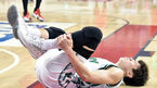 [OSEN=울산, 이동해 기자] 13일 오후 울산 중구 동천체육관에서 '2015-2016 KCC 프로농구' 울산 모비스와 원주 동부의 경기가 열렸다. 2쿼터 동부 두경민이 모비스 전준범의 다리에 걸려 넘어져 고통을 호소하고 있다. 울산 모비스(21승