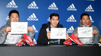 [OSEN=민경훈 기자] 13일 오후 서울시 중구 아디다스 베이스볼 스페셜티 in 동대문에서 열린 아디다스 베이스볼 데이 이대은, 이병규, 이진영 팬사인회에서 단체로 사인을 보여주고 있다. 프리미어12를 통해 야구실력만큼이나 훈