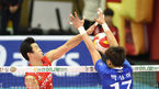 [OSEN=수원, 지형준 기자] 14일 오후 경기도 수원시 수원실내체육관에서 NH농협 2015-2016 프로배구 V리그 남자부 한국전력과 우리카드의 경기가 열렸다. 1세트 한국전력 서재덕의 강타가 우리카드 박상하의 블로킹에 막히고 있다.