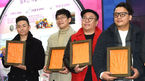 [OSEN=곽영래 기자] 제14회 서울캐릭터라이선싱페어 수호천사 릴레이 캠페인이 17일 오전 서울 강남구 삼성동 코엑스 D홀에서 열렸다. 개그팀 옹알스가 핸드프린팅을 들고 포토타임을 갖고 있다. 이 캠페인은 캐릭터 불법 복제로