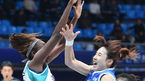 [OSEN=인천,박준형 기자] 21일 오후 인천도원체육관서 열린 '2015~2016 KDB생명 여자프로농구' 신한은행과 KEB하나은행의 경기, 1쿼터 신한은행 게이틀링과 하나은행 백지은이 루즈볼을 다투고 있다.양 팀은 8승 6패를 기록하며 공동 2