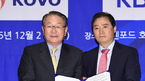 [OSEN=이대선 기자] 21일 오전 서울 마포구 스탠포드호텔 그랜드볼룸에서 '프로배구 방송권 계약 체결식'이 열렸다.구자준 프로배구 총재와 최철호 KBS N 대표이사가 악수를 나누고 있다.KOVO와 KBS N은 2016-2017시즌부터 2020-2021시즌까
