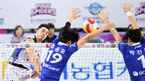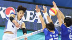 [OSEN=인천, 곽영래 기자] 21일 오후 인천 계양체육관에서 '2015-2016 NH농협 V리그' 남자부 대한항공과 우리카드의 경기가 열렸다.2세트 대한항공 김형우와 김학민이 블로킹을 시도하고 있다.홈팀 대한항공은11승 6패로 3위, 우리카드