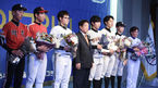 [OSEN=박준형 기자] 23일 오후 서울 마포구 서울가든호텔서 개최된 '2015년 야구인의 밤' 행사에서 우수선수상을 수상한 선수들이 포즈를 취하고 있다.대한야구협회(KBA)는 제70회 청룡기 전국고교야구선수권대회에서 소속팀을 우