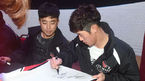 [OSEN=수원, 정송이 기자] 23일 오후 경기도 수원 시청 대강당에서 진행된 kt 사랑의산타행사에 참석한 오정복이팬에게 사인을 해주고 있다.이번 행사는 선수단과 프런트가 참가했으며 팬들과 선수들은 산타 복장을 하고 연고 지
