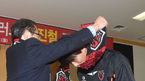 [OSEN=포항, 정송이 기자] 제10대 포항 스틸러스 최진철 감독 취임식이 28일 오전 경상북도 포항시 송라클럽하우스에서 진행됐다.포항 스틸러스 신영권 사장이 최진철 감독에게 포항 머플러를 전달하고 있다.최진철 감독은 선수