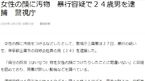 여성의 얼굴에 배설물을 묻힌 도쿄의 24세 남성이 체포됐다.일본 '라이브도어'는 27일 도쿄 미타카 경찰서는 자칭 회사원이라는 24세 남성을 체포했다. 이 남성은 자신의 배설물을 여성의 얼굴에 묻히게 한 혐의를 인정하고 있으