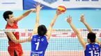 [OSEN=수원, 최규한 기자] 31일 오후 경기도 수원 실내체육관에서 '2015-2016 NH농협 V리그' 남자부 한국전력과 대한항공의 경기가 열렸다.1세트, 대한항공 신영수가 한국전력 서재덕-전진용의 블로킹을 두고 공격을 시도하고 있다.두