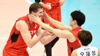 [OSEN=수원, 최규한 기자] 31일 오후 경기도 수원 실내체육관에서 '2015-2016 NH농협 V리그' 남자부 한국전력과 대한항공의 경기가 열렸다.1세트, 한국전력 얀 스토크가 득점을 올린 뒤 팀 동료 강민웅과 환호하고 있다.두 팀의 상대전