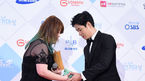[OSEN=지형준 기자] 31일 오후 서울 강남구 삼성동 코엑스에서 SBS '2015 SAF 연기대상' 레드카펫 행사가 열렸다.유준상이 포토월 행사 진행을 맡은 이국주에 핫팩을 건네고 있다.SBS 연기대상은 유준상, 이휘재, 임지연이 MC를 맡았고