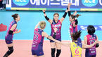 [OSEN=인천, 이대선 기자] 3일 오후 인천 계양체육관에서 '2015-2016 NH농협 V-리그' 여자부 흥국생명과 KGC인삼공사의 경기가 열렸다.4세트를 승리한 흥국생명 선수들이 환호하고 있다.현재 흥국생명은 11승 6패 승점 30점으로 3위를 기