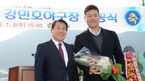 [OSEN=양산, 이대선 기자] 6일 오후 경남 양산시 강민호 야구장에서 '강민호 야구장 준공식'이 열렸다.롯데 강민호가 나동연 양산시장과 기념촬영을 하고 있다.강민호는 지난해 1월 양산시에 2억원을 기부하고 야구 발전과 저변 확