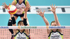 [OSEN=장충체, 이동해 기자] 7일 오후 서울 장충체육관에서 열린 '2015-2016 NH농협 V-리그' 여자부 GS칼텍스와 현대건설의 경기 2세트 GS칼텍스 캣벨의 공격을 현대건설 양효진과 에밀리가 블로킹하고 있다.이선구 감독이 지휘하는 GS
