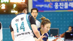 [OSEN=부천, 정송이 기자] 8일 오후 경기도 부천실내체육관에서 열린 2015-2016 KEB 하나은행과 인천 신한은행의 퓨처스 경기 2쿼터, 신한은행 김아름이 하나은행 이수연 수비에 막히자 공을 패스 하고 있다. /ouxou@osen.co.kr