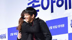 [OSEN=지형준 기자] 배우 이미연, 최지우, 김주혁, 유아인, 강하늘, 이솜 등이 출연하는 영화 '좋아해줘' 제작보고회가 12일 오전 서울 압구정 CGV에서 열렸다.이미연, 유아인이 포토타임을 하며 포옹을 하고 있다.'좋아해줘'는 대책