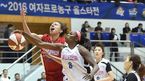 [OSEN=당진, 최규한 기자] 17일 오후 충청남도 당진 실내체육관에서 '2015-2016 KDB생명 여자프로농구 올스타전'이 열렸다.모스비가 햄비의 슛을 블록하고 있다.선발 출전 선수로는 지난해 12월 15일부터 1월 8일까지 실시한 팬투표 득
