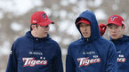 [OSEN=함평, 민경훈 기자] 20일 오전 전라남도 함평군 기아타이거즈함평전용구장에서 진행된 KIA 타이거즈 함평 캠프 훈련이 진행됐다. 양현종과 윤석민이 훈련을 하며 얘기를 나누고 있다.KIA는 올해 스프링캠프를 이원화로 치른
