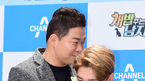 [OSEN=백승철 기자] 22일 오후 서울 상암동 채널A 동아디지털미디어센터에서 열린 채널A '개밥 주는 남자' 기자간담회에서 현주엽과 강인이 장난을 치고 있다.'개밥 주는 남자'는 상남자와 강아지의 리얼 동거를 다룬 예능 프로그