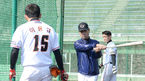 [OSEN=고치(일본), 민경훈 기자] 25일 일본 고치 시영구장과 동부구장에서 진행된 한화 이글스의 전지훈련에서 한화 김성근 감독이 이용규에게 스윙 폼을 알려주고 있다.한화 선수단은 2016시즌 일본 스프링캠프를을 위해 오는 지