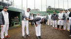 [OSEN=고치(일본), 민경훈 기자] 30일 일본 고치 시영구장과 동부구장에서 진행된 한화 이글스 고치 스프링캠프 훈련서 로사리오가 한화 선수단과 상견례를 하며 고개숙여 인사할때 로저스가 뒤에서 해머로 엉덩이를 때리는 제스