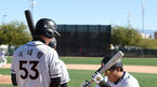 [OSEN=투산(美애리조나), 지형준 기자] 29일(현지시간) 미국 애리조나 투산 키노 스포츠컴플렉스에 스프링캠프를 차린 kt 위즈가 2016 시즌을 위해 본격적인 담금질에 들어갔다.이진영이 타격 훈련을 하며 이대형의 타격 폼을 따라