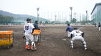 [OSEN=고치(일본), 민경훈 기자] 1일 일본 고치 시영구장에서 진행된 한화 이글스 고치 스프링캠프 훈련서 김성근 감독이 직접 펑고를 치며 지시를 내린 투수 수비 훈련 때 한화 로저스가 다이빙 캐치를 하고 있다.한화 선수단은 2