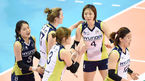 [OSEN=대전, 이대선 기자] 1일 오후 대전 충무체육관에서 ‘2015-2016 NH농협 V-리그’ 여자부 KGC인삼공사와 현대건설의 경기가 열렸다.1세트 현대건설 선수들이 득점 후 환호하고 있다.KGC인삼공사는 4승 18패 승점 14점으로 최