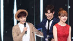 [OSEN=이대선 기자] 2일 오후 서울 마포구 상암동 SBS 프리즘타워에서 열린 'SBS 더 쇼' 생방송 무대에서 가수 려욱이 조미와 인사를 하고 있다.이날 방송에는 코코소리, 베이비부, 임팩트, 라붐, 예지, 크로스진, 스텔라, 모세&레