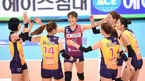 [OSEN=대전, 정송이 기자] 3일 오후 대전 충무체육관에서 ‘2015-2016 NH농협 V-리그’ KGC인삼공사와 흥국생명의 경기가 열렸다.2세트, 서브 득점에 성공한 흥국생명이 기뻐하고 있다.흥국생명과 인삼공사가 외국인 선수 없이
