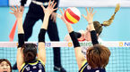 [OSEN=수원, 이동해 기자] 13일 오후 수원 실내체육관에서 열린 '2015-2016 NH농협 V-리그' 여자부 현대건설과 도로공사의 경기 1세트 도로공사 시크라와 현대건설 양효진이 볼을 넘기기 위해 노력하고있다.양철호 감독이 지휘하는 현