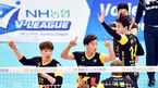 [OSEN=수원, 이동해 기자] 13일 오후 수원 실내체육관에서 열린 '2015-2016 NH농협 V-리그' 남자부 한국전력과 OK저축은행의 경기 1세트 OK저축은행 한상길이 득점에 성공, 팀원들과 기쁨을 나누고 있다.신영철 감독이 지휘하는 한국전