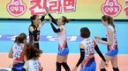 [OSEN=대전, 최규한 기자] 16일 오후 대전 충무체육관에서 '2015-2016 NH농협 V리그' 여자부 KGC인삼공사와 한국도로공사의 경기가 열렸다.4세트를 따낸 도로공사 선수들이 환호하고 있다.원정팀 도로공사는 12승 14패 승점 36점으로 4위