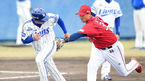 [OSEN=오키나와, 이대선 기자] 19일 오후 일본 오키나와 온나손에 있는 아카마구장에서 삼성 라이온즈와 KIA 타이거즈의 경기가 열렸다.4회말 2사 3루에서 삼성 3루주자 나성용이 2-3루간 협살에 걸려 KIA 김주형의 태그를 피하고 있