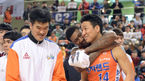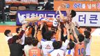 [OSEN=인천, 곽영래 기자] 21일 오후 인천삼산체육관에서 2015-2016 KCC 프로농구 인천 전자랜드와 울산 모비스의 경기가 열렸다.하프타임때 진행된 전자랜드 이현호 은퇴식에서 이현호가 동료들에게 헹가래를 받고 있다.모비스와 KC